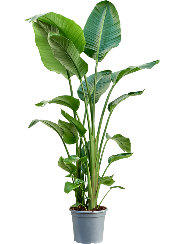 Le Strelitzia est une plante extrêmement populaire grâce à ses magnifiques éventails, ses feuilles imposantes qui poussent vers le haut. Cette plante est donc souvent un point d'attraction dans une pièce et apporte une ambiance jungle à l'intérieur.