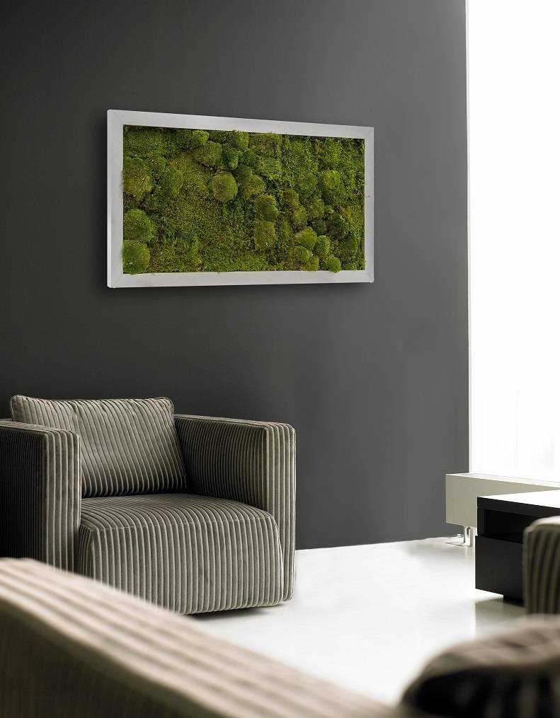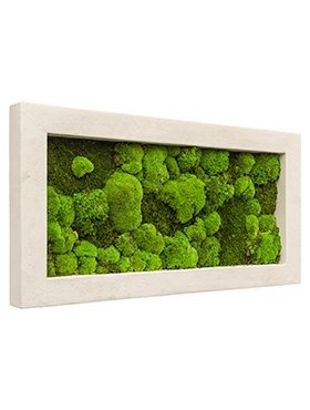 Ce tableau vert unique, recouvert de mousse et encadré de polystone, est un régal pour les yeux. De plus, comme pour un tableau ordinaire, une fois accroché, vous n'avez plus rien à faire. Vous n'avez pas besoin d'humidifier le tableau, car il contient de la mousse momifiée. Il s'agit de vraie mousse naturelle dont l'humidité a été remplacée par un liquide de préparation écologique et biodégradable. En laissant la mousse absorber ce liquide, elle reste belle longtemps et conserve son aspect et sa couleur naturels.