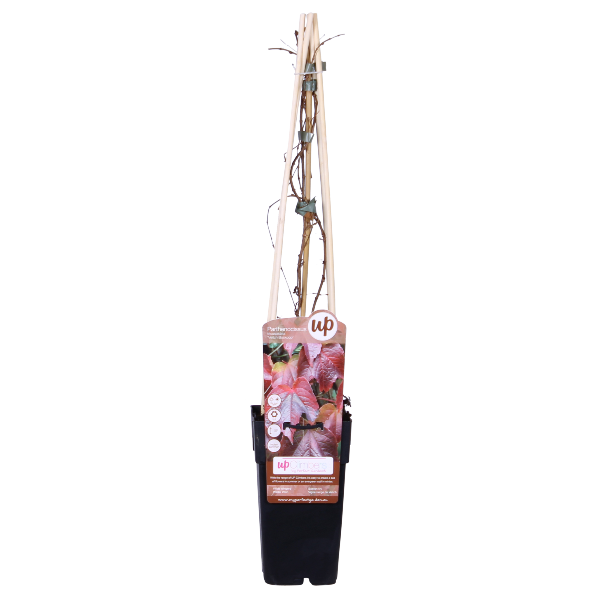 La 'Parthenocissus tricuspidata Veitch Boskoop', également appelée vigne vierge, est une plante grimpante à croissance rapide et auto-adhésive. Elle n'a donc pas besoin d'être attachée. Ses feuilles trilobées sont vertes en été et prennent une magnifique couleur rouge vif à l'automne. Grâce à ses fortes racines crampons, la vigne vierge pousse rapidement et solidement contre les façades et les clôtures, mais elle peut aussi être utilisée comme couvre-sol. En hiver, elle perd ses feuilles mais peut bien survivre aux hivers rigoureux. C'est une plante facile qui peut être placée aussi bien au soleil qu'à l'ombre.
