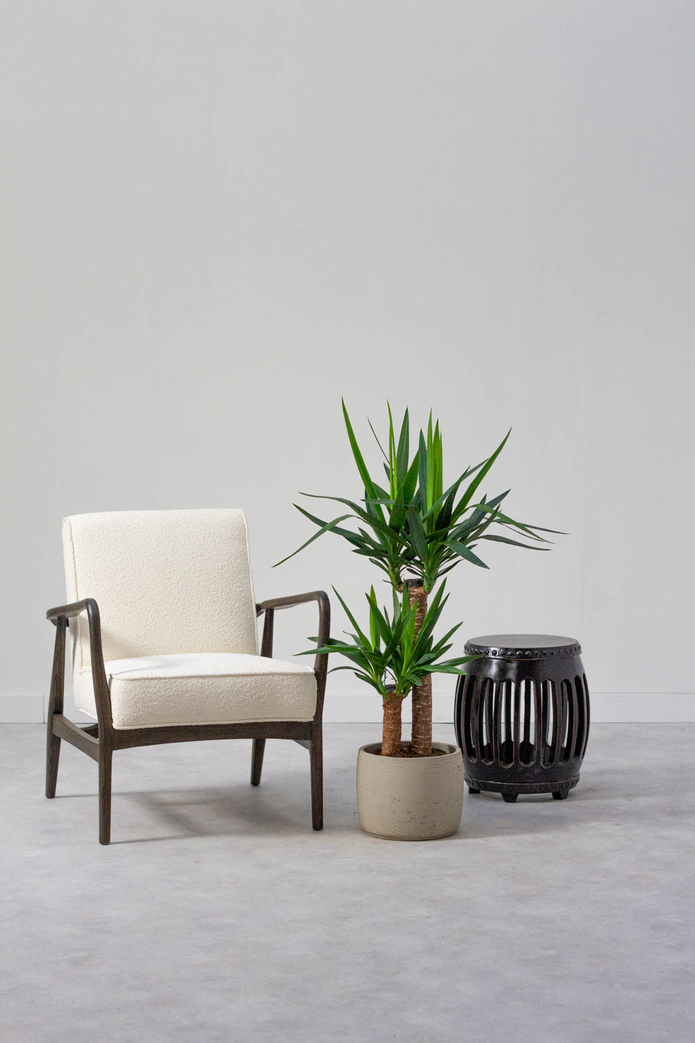 Le Yucca ou "Palmier-lis" est une plante caractéristique qui a un aspect moderne. Grâce à son tronc robuste et ses feuilles pointues, le Yucca a une apparence robuste et est également une plante facile à entretenir. Tous ces facteurs font du Yucca une plante d'intérieur idéale.