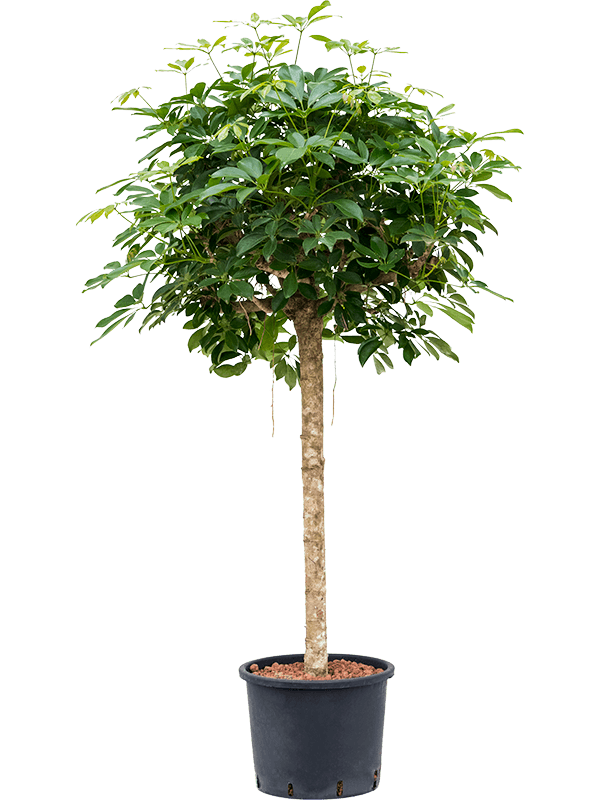 Zet de Schefflera op een lichte plek zonder direct zonlicht. Houd de potgrond vochtig, maar zorg dat de wortels niet constant in het water staan. Voor een goede gezondheid kunt u de plant om de 6 tot 8 weken extra voeding geven. De Schefflera is licht giftig voor mens en dier.
