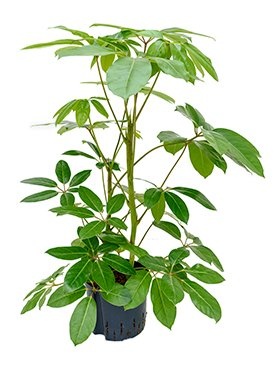 De Schefflera staat in Nederland vaak bekend onder een andere naam: de Vingerplant. Deze bijnaam komt van de handvormige bladeren van de Schefflera. Als u op zoek bent naar een gemakkelijke plant hoeft u niet verder te zoeken. De Schefflera heeft weinig licht, water, voeding en aandacht nodig. Daarnaast geeft het een prachtige uitstraling aan uw kamer!