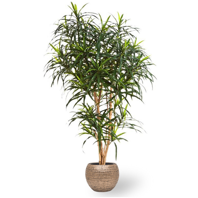 Grote kunstplant Grote kunstplanten zijn een uitstekend alternatief voor diegene die een grote toevoeging willen aan hun kamer, maar die geen groene vingers hebben. Deze grote kunstplanten zullen niet van kleur verschieten en blijven fier rechtop staan. De kunstplanten kunnen zelfs op de meest plant-ongeschikte plekken worden gezet en van elk hoekje een Urban Jungle maken. Elk onderdeel van de kunstplant is met zorg in elkaar gezet, waardoor de plant bijna niet van echt te onderscheiden is. Kunstplanten van Fleurdirect Kunstplanten zijn erg populair geworden door het gebruik van materialen die perfectie benaderen. De kunstplanten van Fleurdirect zijn van de allerhoogste kwaliteit. Hierdoor verkleuren de planten niet bij aanraking van UV licht en kunt u nog jarenlang genieten van uw aankoop. POT Deze bloempot komt uit een serie die geheel met handgemaakte producten zorgvuldig zijn afgewerkt tot in het kleinste detail. De Metallic collectie heeft een chique en elegante uitstraling. De bloempotten zijn volledig bedekt met bladzilver en vervolgens afgewerkt met een transparant gekleurde laklaag. De bloempotten zijn waterdicht en kunnen dus ook binnen huis gebruikt worden.