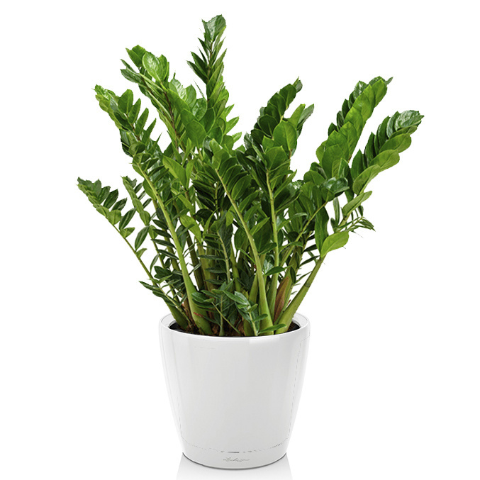 De Zamioculcas valt op met het uiterlijk dat een beetje op een verentooi lijkt. De dikke stengels slaan vocht en voedingsstoffen op, waardoor ze een, schijnbaar, onuitputtelijk uithoudingsvermogen hebben. Dat maakt het één van de makkelijkste Kamerplanten ooit. De Zamioculcas blijft stoïcijns onder vergeetachtige eigenaren en blijft intussen trouwhartig groen.