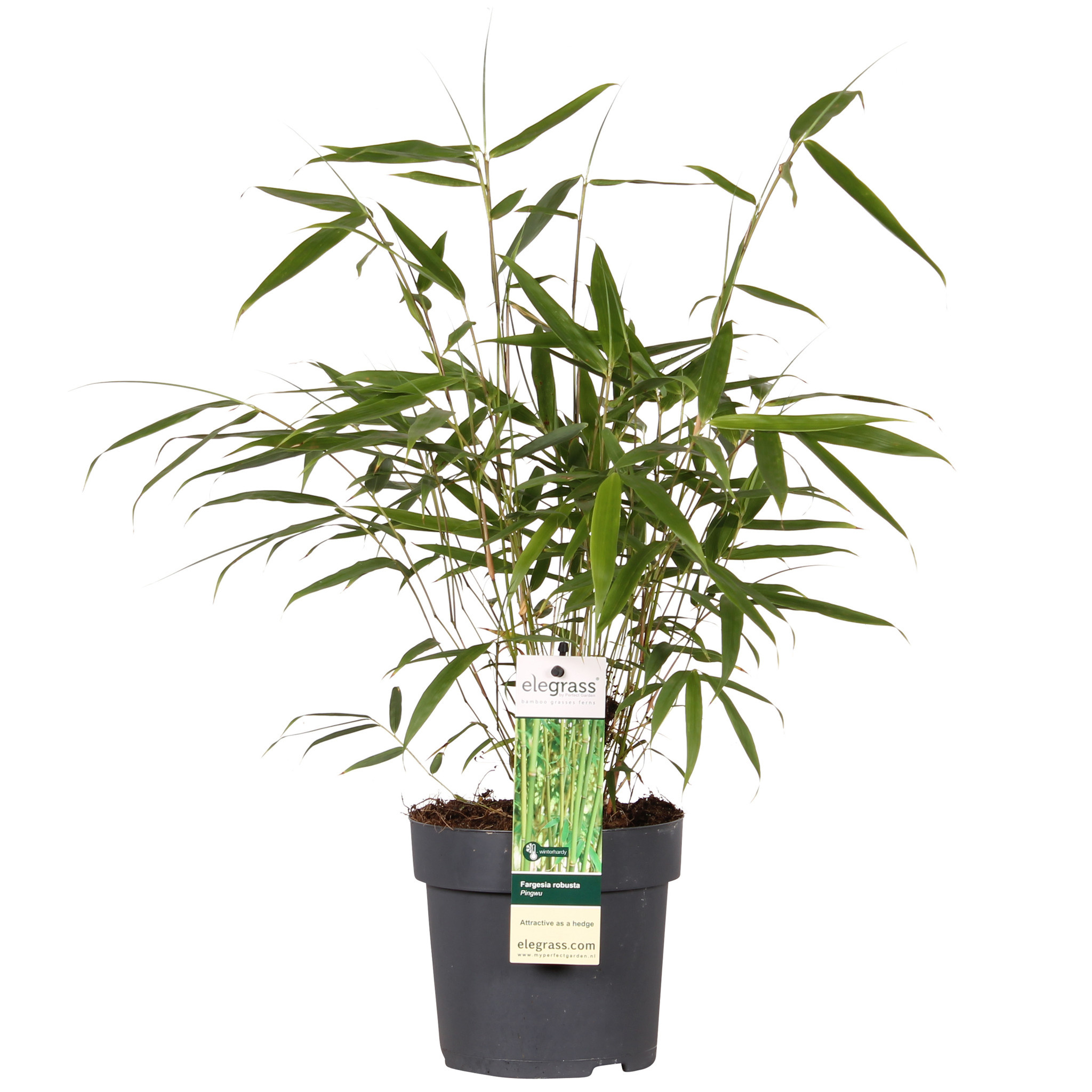 De Fargesia robusta ‘Pingwu’ is een niet woekerende bamboe met een bossige en opgaande groei. Deze bamboe is geschikt in de tuin, als groenblijvende haag maar ook in een grote pot of bak. De bamboe is een snel groeiend en groeit gemiddeld 40 - 60 cm per jaar. Het is een mooie Fargesia soort met wit/gele schutbladeren en diep groene stengels welke een diep contrast geven.