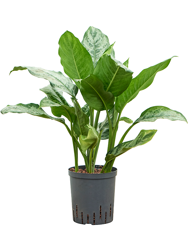 Als hydroplant groeit deze Aglaonema niet in aarde maar in een waterkerend substraat, wat de verzorging extra eenvoudig maakt. Houd het waterpeil stabiel volgens de indicator en vul bij wanneer dit nodig is. Hydroplanten houden van een constante vochttoestand zonder natte voeten, waardoor ze minder gevoelig zijn voor uitdroging of wortelrot. Tijdens de groeiperiode kun je speciale hydroplantenvoeding toevoegen voor een sterke, gezonde bladgroei. Omdat de plant niet bloeit, richt ze al haar energie op frisse, fraaie bladeren.