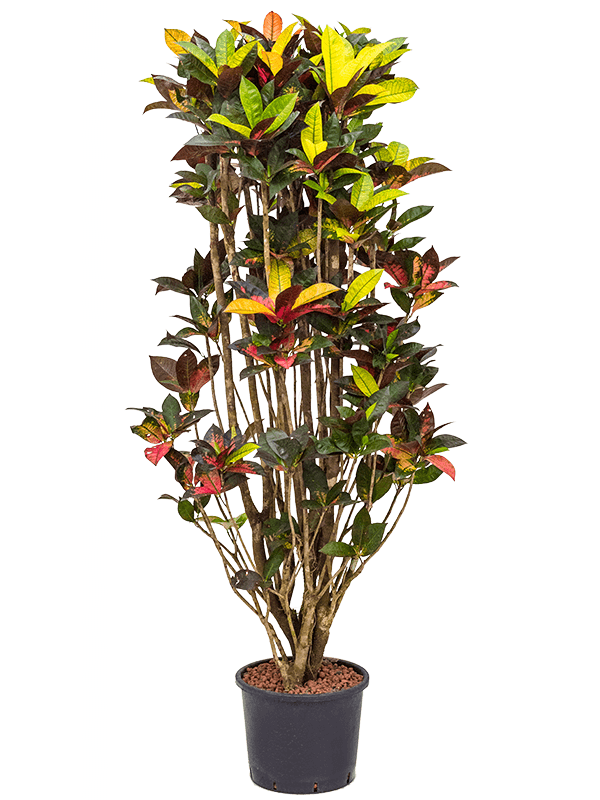 De Croton kan zowel op een lichte als een zonnige plek staan en heeft pas water nodig als de grond bijna droog aanvoelt. Geef de plant 1x per 2 weken extra voeding, maar niet in de winter. De Croton is giftig voor mens en dier.
