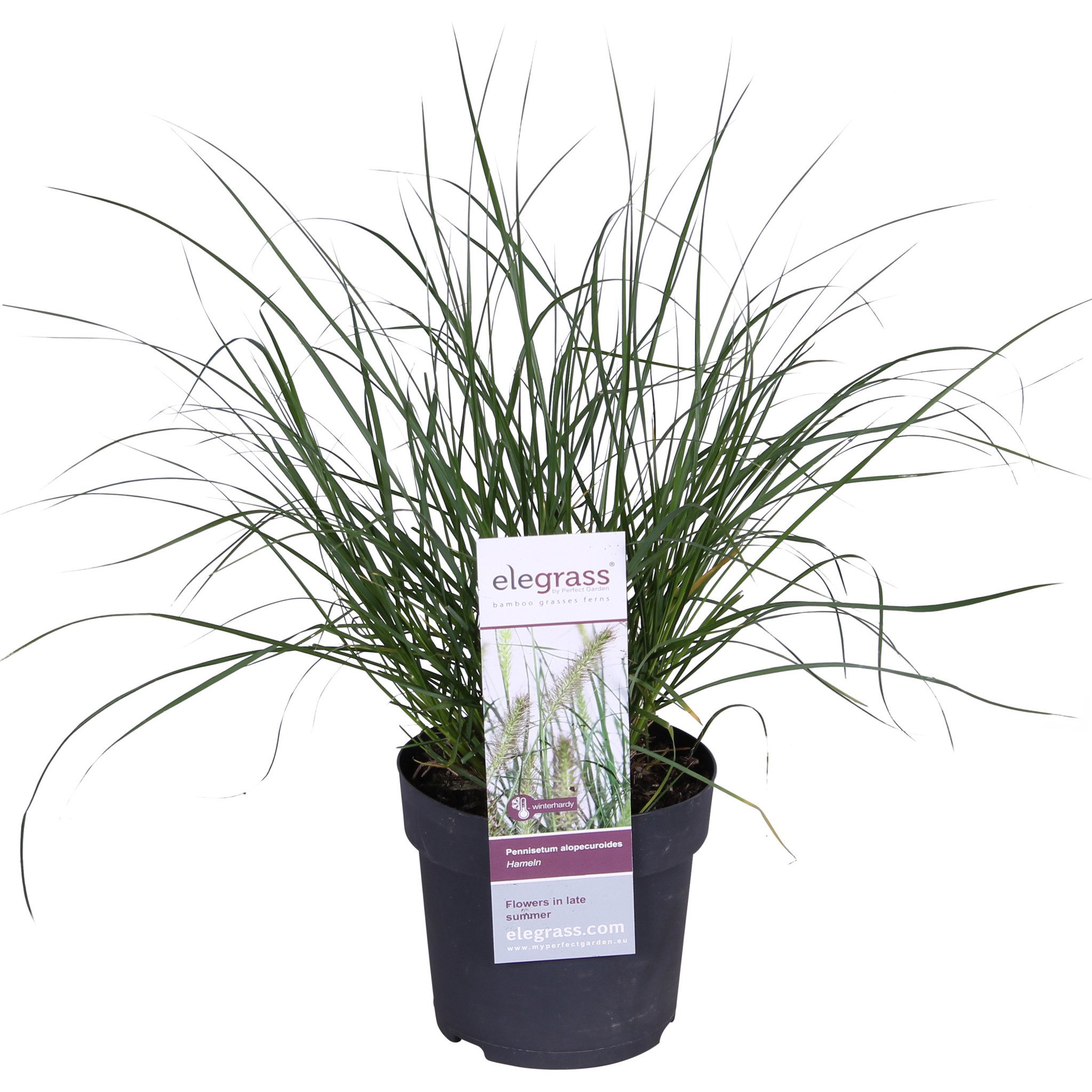 Pennisetum alopecuroides "Hameln", in het nederlands lampenpoetsersgras genaamd, is een bijzonder populaire bladverliezende grassoort met een ronde, compacte, polvormende habitus. De bladeren zijn smal lineair, middengroen tot donkergroen, boogvormig en overhangend, in de herfst krijgen ze een goudgele kleur. Pennisetum alopecuroides "Hameln" bloeit van juli tot september met eerst groenachtige, roomwitte bloemaren die later in de herfst grijsbruin kleuren. Dit lampenpoetsersgras houdt van een standplaats in volle zon of halfschaduw en een goed doorlaatbare, gemiddeld vruchtbare niet té zware grond. Deze pennisetum is redelijk tot goed winterhard en droogtetolerant, verdraagt goed zeewind en luchtvervuiling. Het is een mooi siergras voor de gemengde border, de gravel tuin, prairietuin of ook bruikbaar als kuipplant en geschikt als snijbloem.