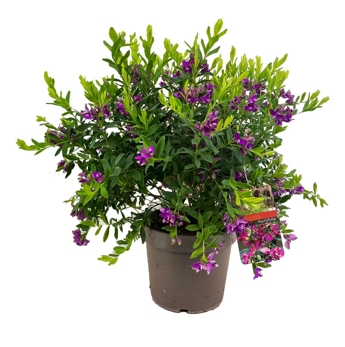 Polygala myrtifolia wordt ook wel vleugeltjesbloem genoemd. De plant bloeit vanaf april tot en met oktober. De Polygala heeft mooie vrolijke paarse bloemen. In het donker gaan de bloemen dicht en wanneer het licht wordt gaan ze weer open. Het blad is ovaalvormig en groen van kleur. De plant is groenblijvend.