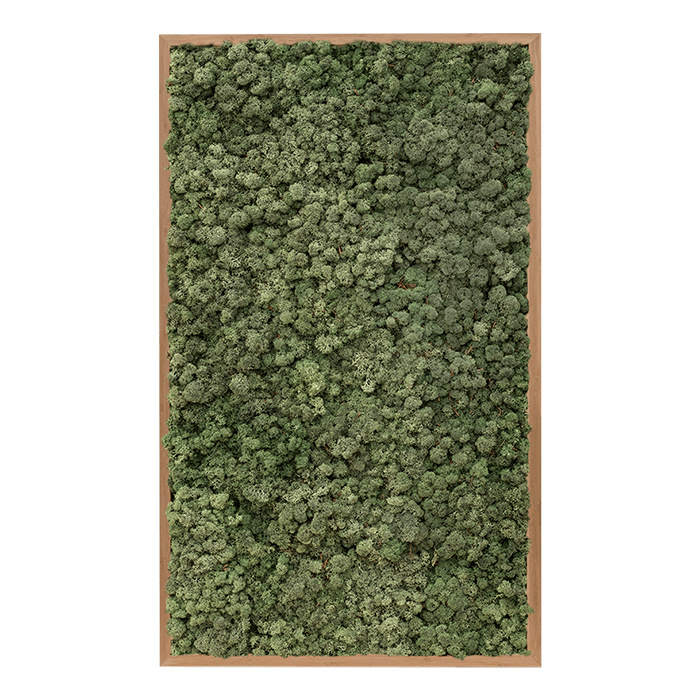 Dit schilderij bestaat uit 50% platmos en 50% bolmos, wat het schilderij nog meer tot leven brengt. Daarnaast kunt u kiezen uit vier verschillende frames: Naturecast, Raw Grey, Natural en Rock.