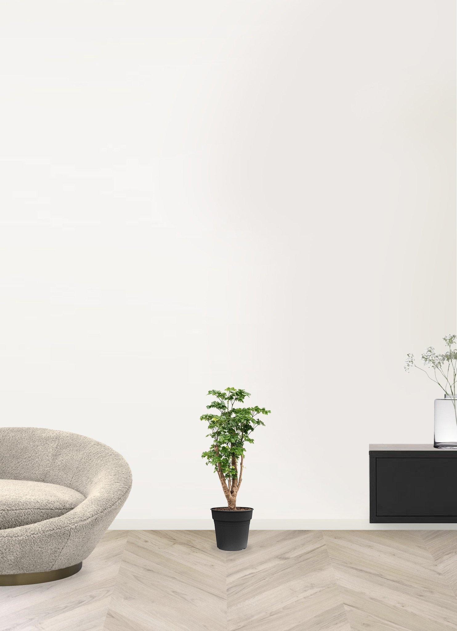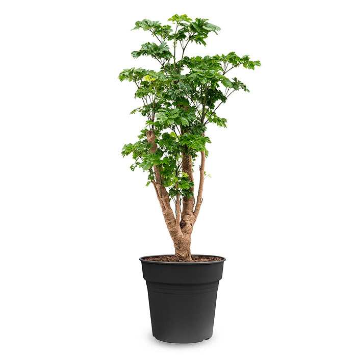 Polyscias is een plant met een sterk karakter. Deze plant weet goed hoe hij verzorgd wilt worden en hoeveel water hij fijn vindt. Verplaats deze plant ook niet te vaak, want daar houdt hij niet van. Het is een opvallende plant door zijn dikke stam en kleine blaadjes. Een echte blikvanger dus.