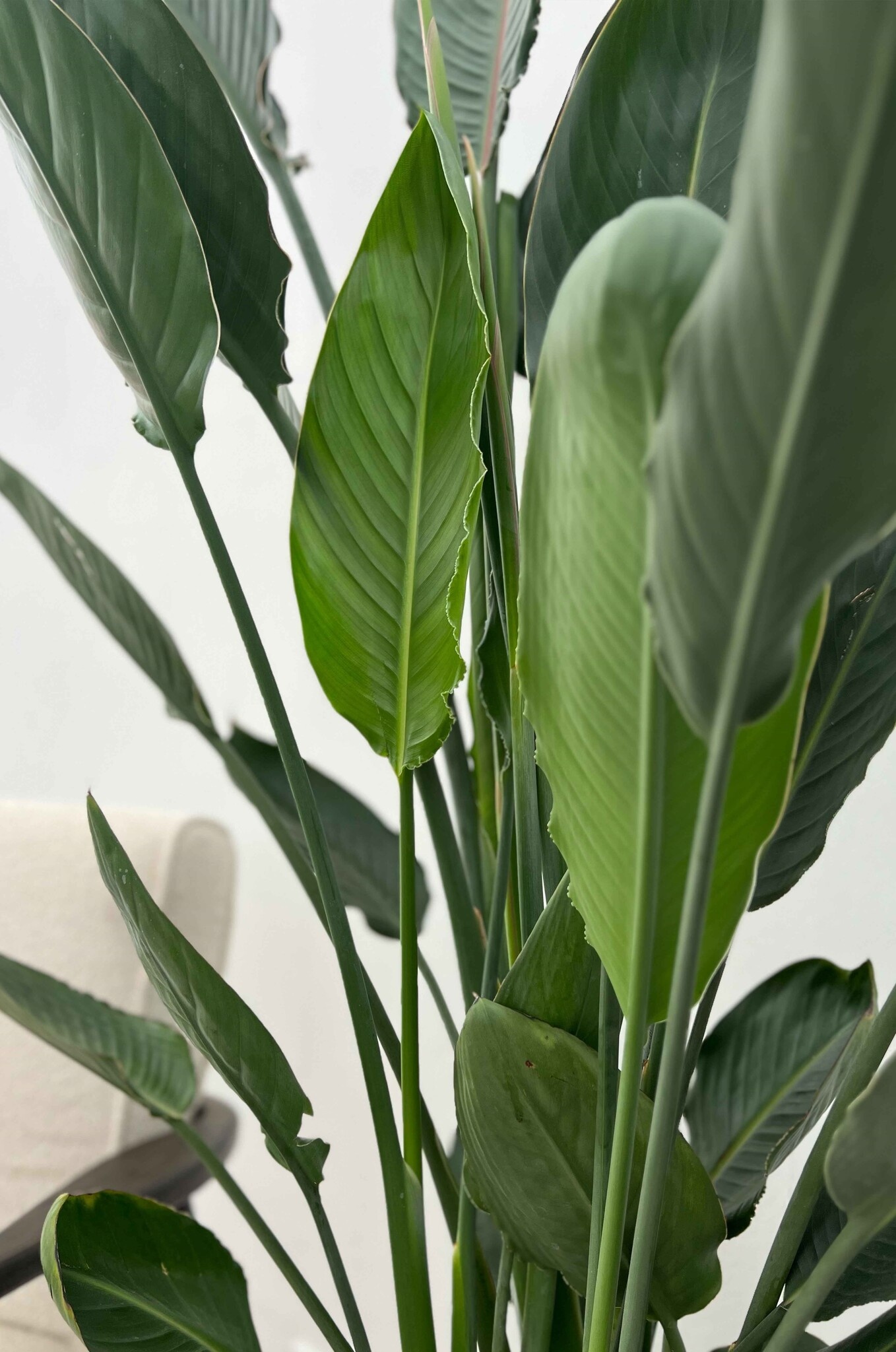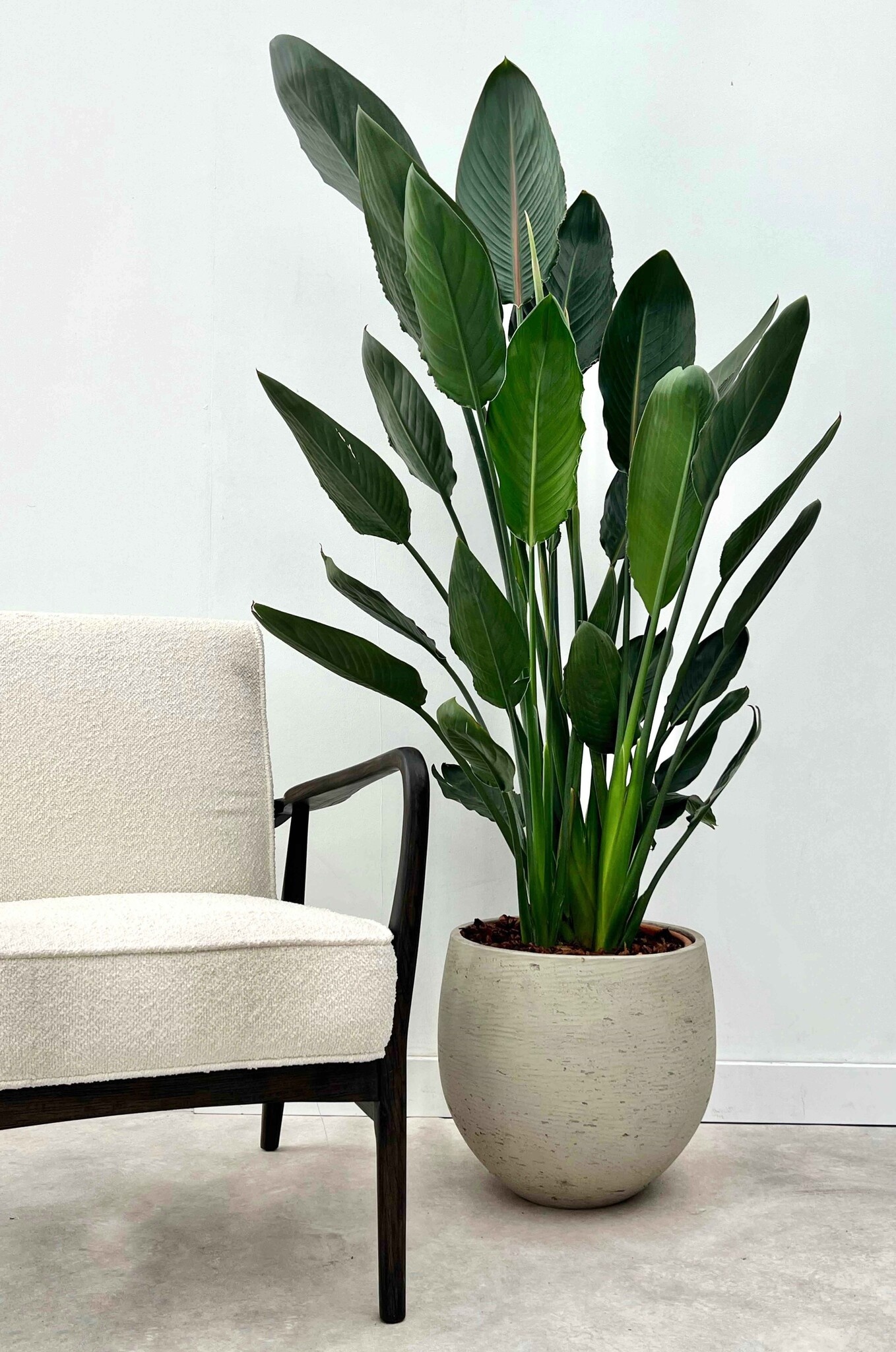De Strelitzia is een enorm populaire plant vanwege zijn mooie waaiers, de imposante bladeren die omhoog groeien. Deze plant staat dan ook vaak als eyecather in de ruimte en brengt de jungle vibe naar binnen.
