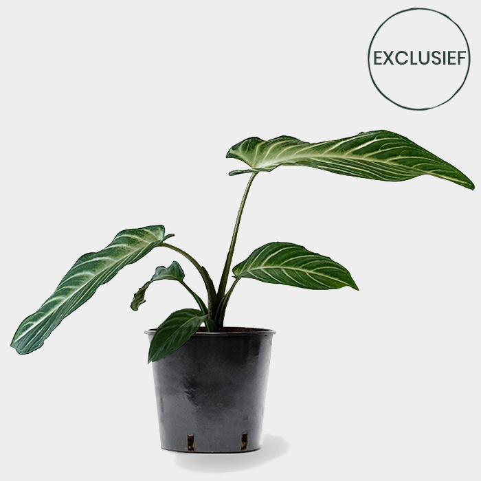 De Xanthosoma Lindenii is een hippe kamerplant. Door de bijzondere witte nerven in het blad is het een echte blikvanger! De bijnaam van deze plant is 'Angel's Wing'. Dit heeft de plant te danken aan de bijna lichtgevende witte nerven.
